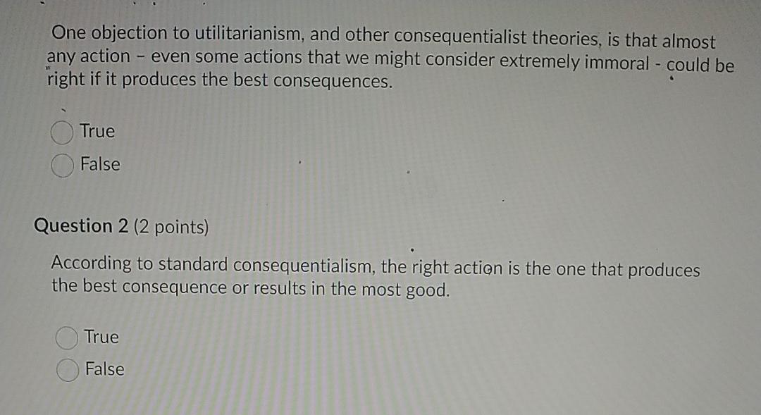 Solved Any Action One Objection To Utilitarianism And Other Chegg Com